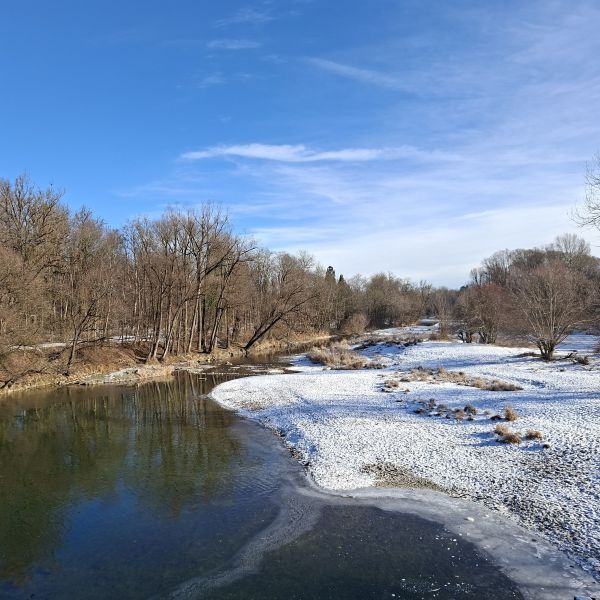 Das Rieseln der tanzenden Schneeflocken beobachten. Dem leisen Knistern lauschen, wenn sich eine Flocke auf meine Jacke setzt. Spüren, wie die einzelnen Kristalle auf meiner Haut einen erfrischenden Gruß hinterlassen. Die kühle Luft einatmen. Wahrnehmen, wie der Schnee unter meinen Füßen knirscht, nachgibt und gleichzeitig so stabil ist, dass er mich trägt.